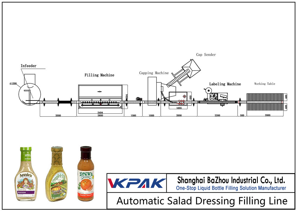 - Dette automatisk påfyldningslinie for salatdressing leveres med alt hvad du har brug for for at få din salatdressing aftapning klar og kørt. Det er designet til at flaske 30-60 flasker i minuttet afhængigt af produktets viskositet. Start dit projekt i dag ved at udfylde nedenstående formular!